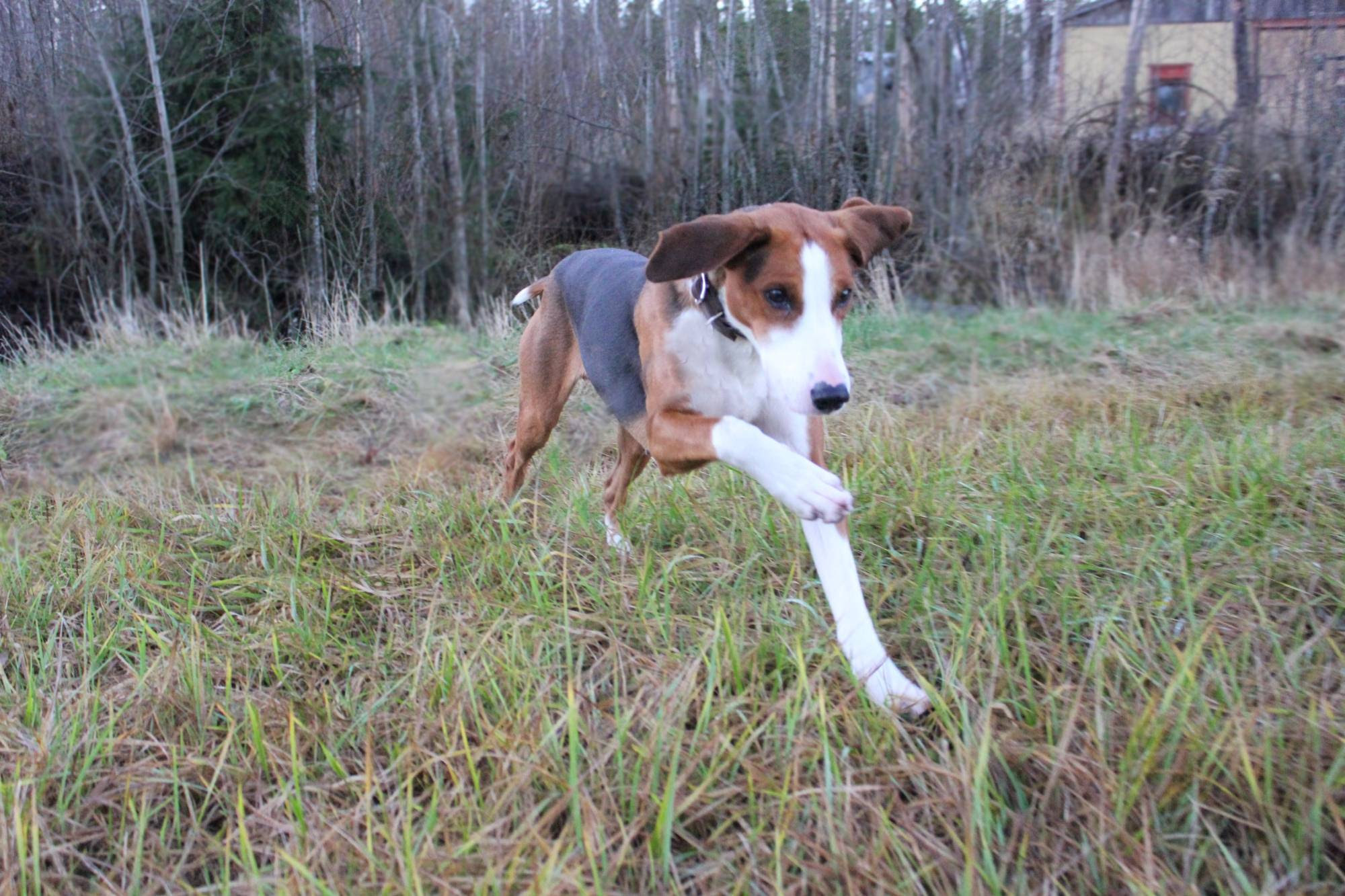 Pellolla hyppiminen, pomppiminen ja juokseminen on aivan mahtavaa Virkun mielestä!